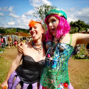 Our friendly creative team of artists dressed to impress with some of their own designs showcasing their skills in costume making and festival fashion styles and craft techniques. welcoming everybody to come and have a try at upcycling garments costume-making doing your own hair and make-up or a complete make-over